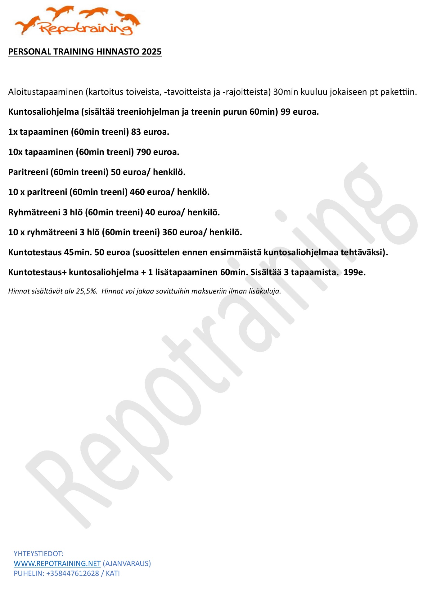 Repotrainingin palveluihin kuuluu: